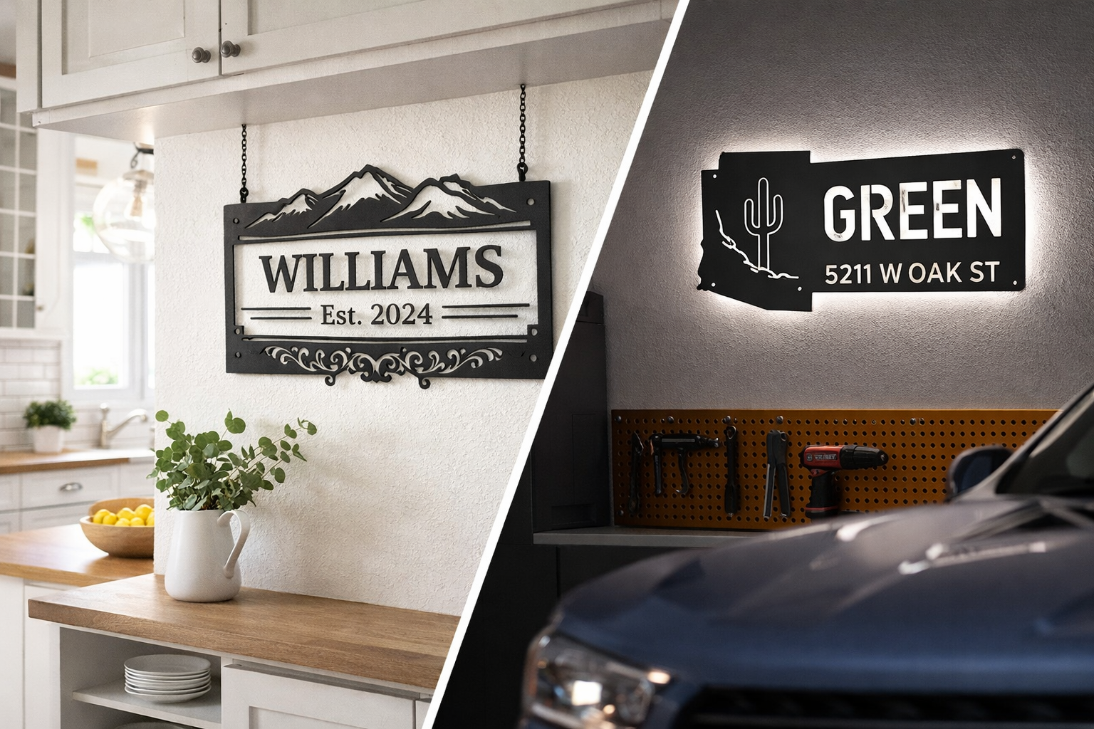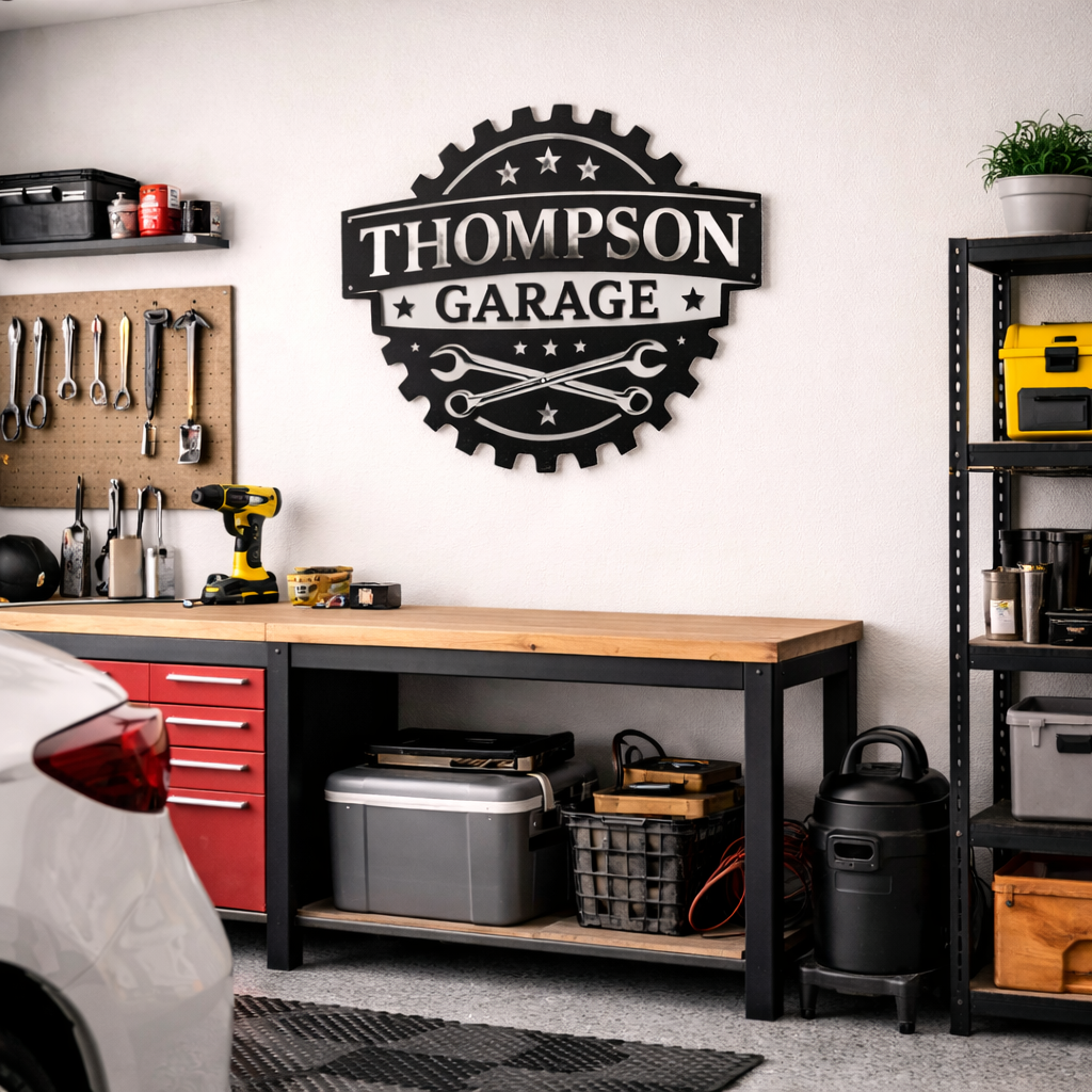GarageDurable, bold signs that feel right at home in a garage or workshop - names, numbers, or themes that make the space feel finished and personal